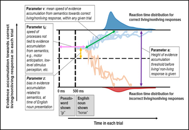 Drift diffusion modeling of reaction times in an artificial language experiment shows that apparent learning effects in participants without conscious awareness of an underlying rule were underlyingly driven by motor adaptation to predictable button-press sequences, whereas rule-aware learners showed both motor adaptation and sensitivity to noun semantics